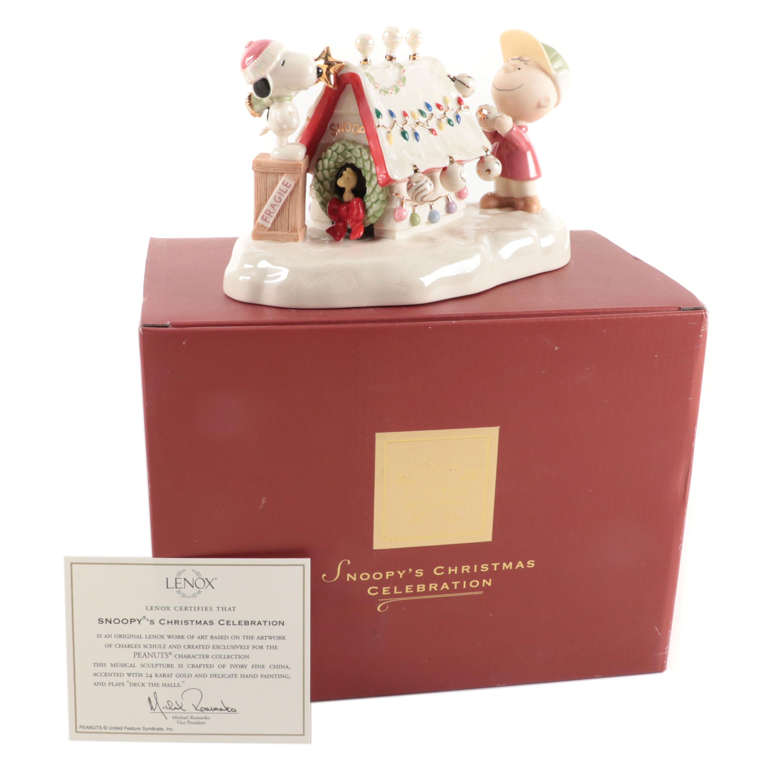 Lenox "Snoopy's Christmas Celebration" Ceramic Music Box Figurine | EBTH